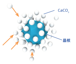 基于聚合结晶机理,通过非均相成核模式,通过向水中投加成核介质,在添加除硬药剂同时,使水中的Ca2+生成产物并附着在成核介质表面聚合形成颗粒物从而被去除。