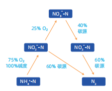PNP-ANA®是氨氮和亚硝耦合的短程硝化—厌氧氨氧化反应技术,低溶氧条件下,实现部分氨氮亚硝化反应,实现亚硝和氨氮的耦合反应。